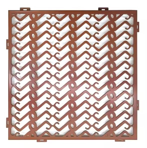 Đặc điểm của tấm nhôm đơn đục lỗ và khắc. Với công nghệ và thiết bị sản xuất tiên tiến, các hoa văn, kích thước và mật độ lỗ khác nhau được kết hợp để tạo ra hiệu ứng động trên bề mặt của tấm nhôm, phá vỡ khái niệm thiết kế truyền thống. Nó có thể được gia công thành nhiều hình dạng khác nhau theo các môi trường bên ngoài khác nhau. Nó có các chức năng truyền ánh sáng và thông gió, làm cho các đường nét trở nên sống động và thanh lịch hơn. Nó cố gắng trở thành một thế hệ sản phẩm chủ đạo mới mang tính cá nhân hóa và nghệ thuật. Tấm nhôm thân thiện với môi trường, không độc hại, hoàn toàn chống cháy và có nhiều kiểu dáng khác nhau. Hoa văn có thể được tùy chỉnh theo sở thích cá nhân, làm nổi bật cá tính. Bề mặt có hiệu ứng ba chiều mạnh mẽ, chống tĩnh điện, không tích tụ bụi và dễ lau chùi. Trong quá trình lắp đặt, xương sống được cố định vào trần nhà dọc theo đường nằm ngang và tấm được gắn vào đơn giản, giúp dễ dàng lắp đặt và tháo dỡ, đồng thời thuận tiện cho việc bảo trì và sửa chữa.